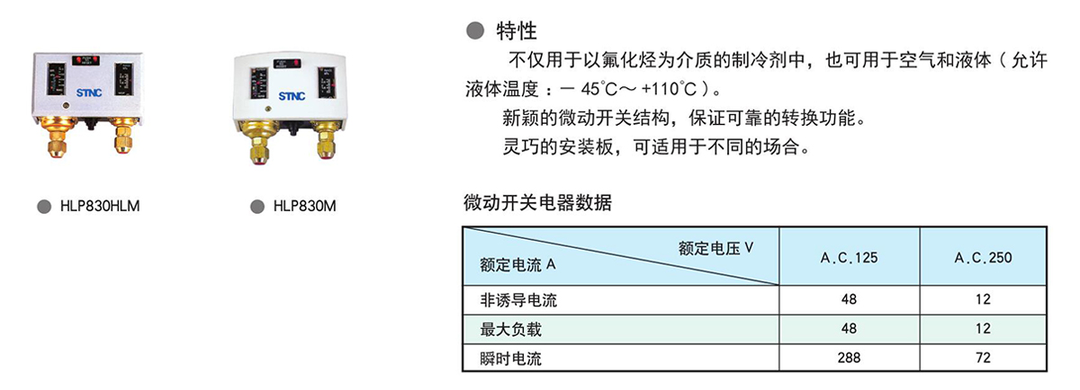 特性:不仅用于以氯化烃为介质的制冷剂中,也可用于空气和液体(允许液体温度:-45℃~+110℃)。