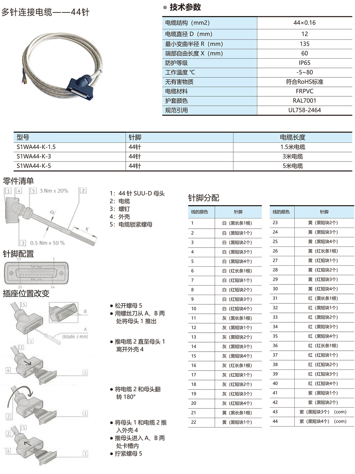44针阀岛线缆