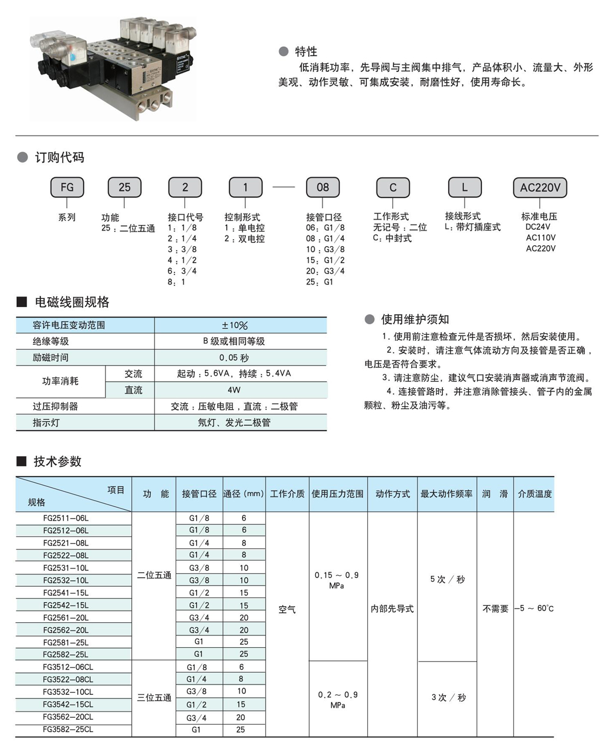 特性:低消耗功率,先导阀与主阀集中排气,产品体积小、流量大、外形美观、动作灵敏、可集成安装,耐磨性好,使用寿命长。