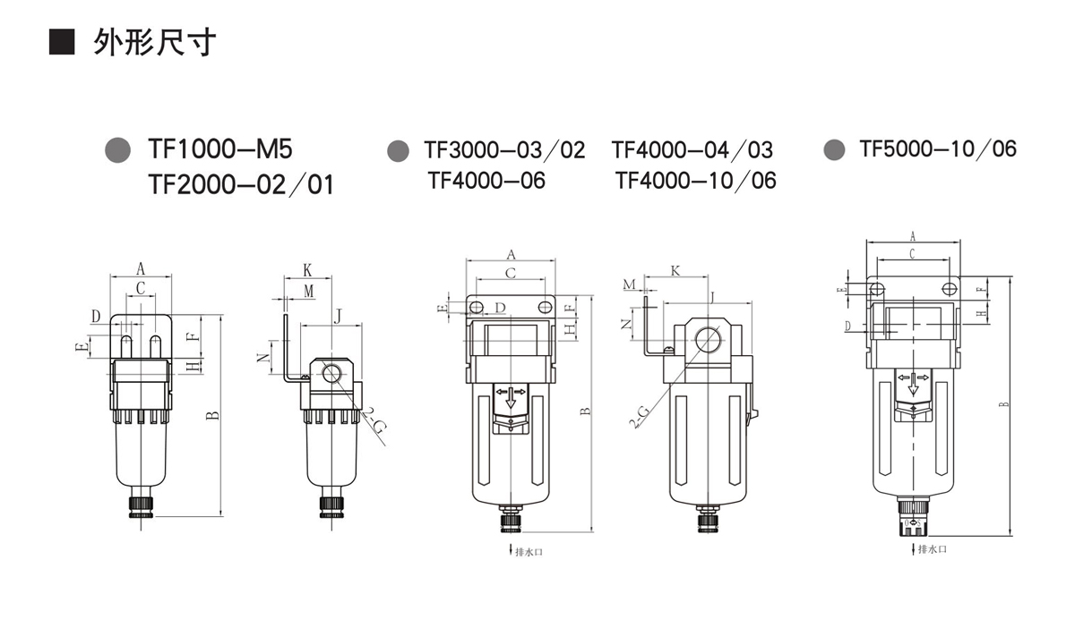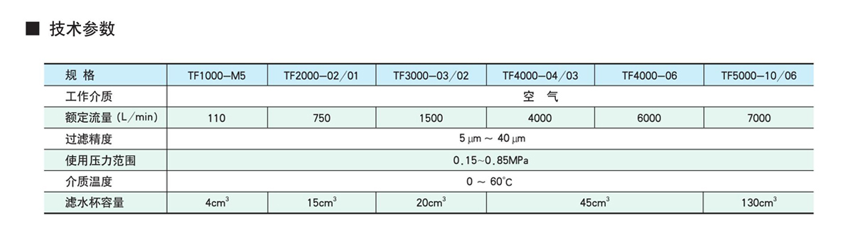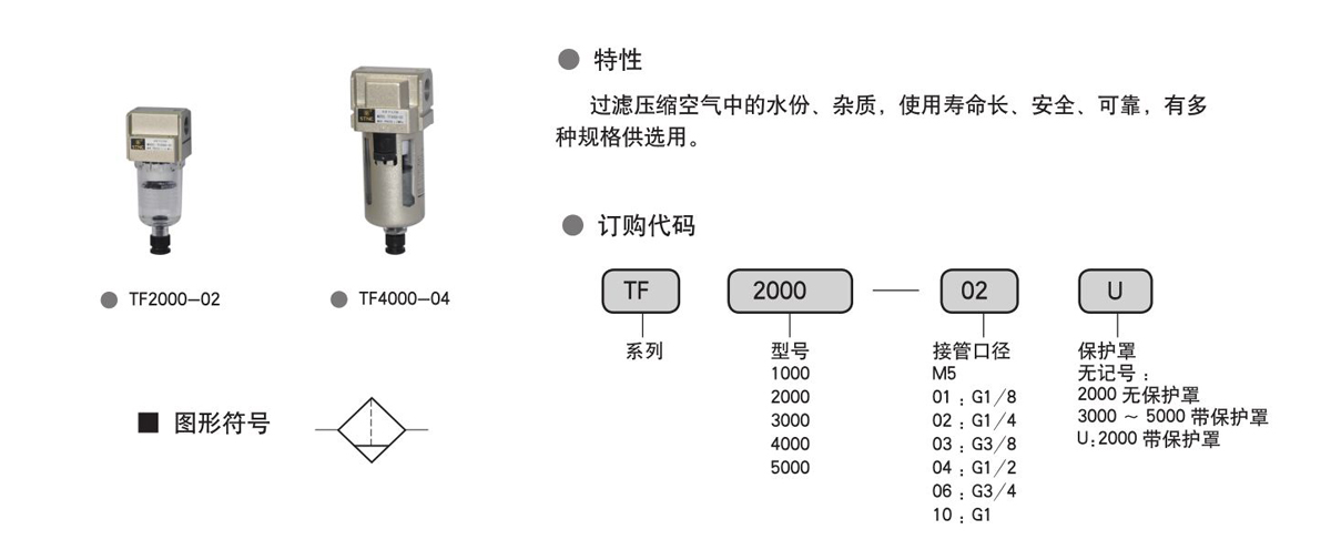 特性:过滤压缩空气中的水分、杂质,使用寿命长、安全、可靠 ,有多种规格供选用。