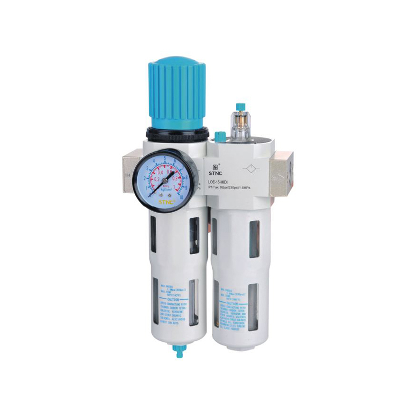 特性:LFC...型三联件由一个LFR-...型过滤减压阀和一-个LOE-...型油雾器组成。这些元件也可分别订购。分水过滤器能滤除上游空气中的污物、管垢、铁锈及冷凝水。对于特殊应用的场合,5um滤芯可很容易替换40um标准滤芯。