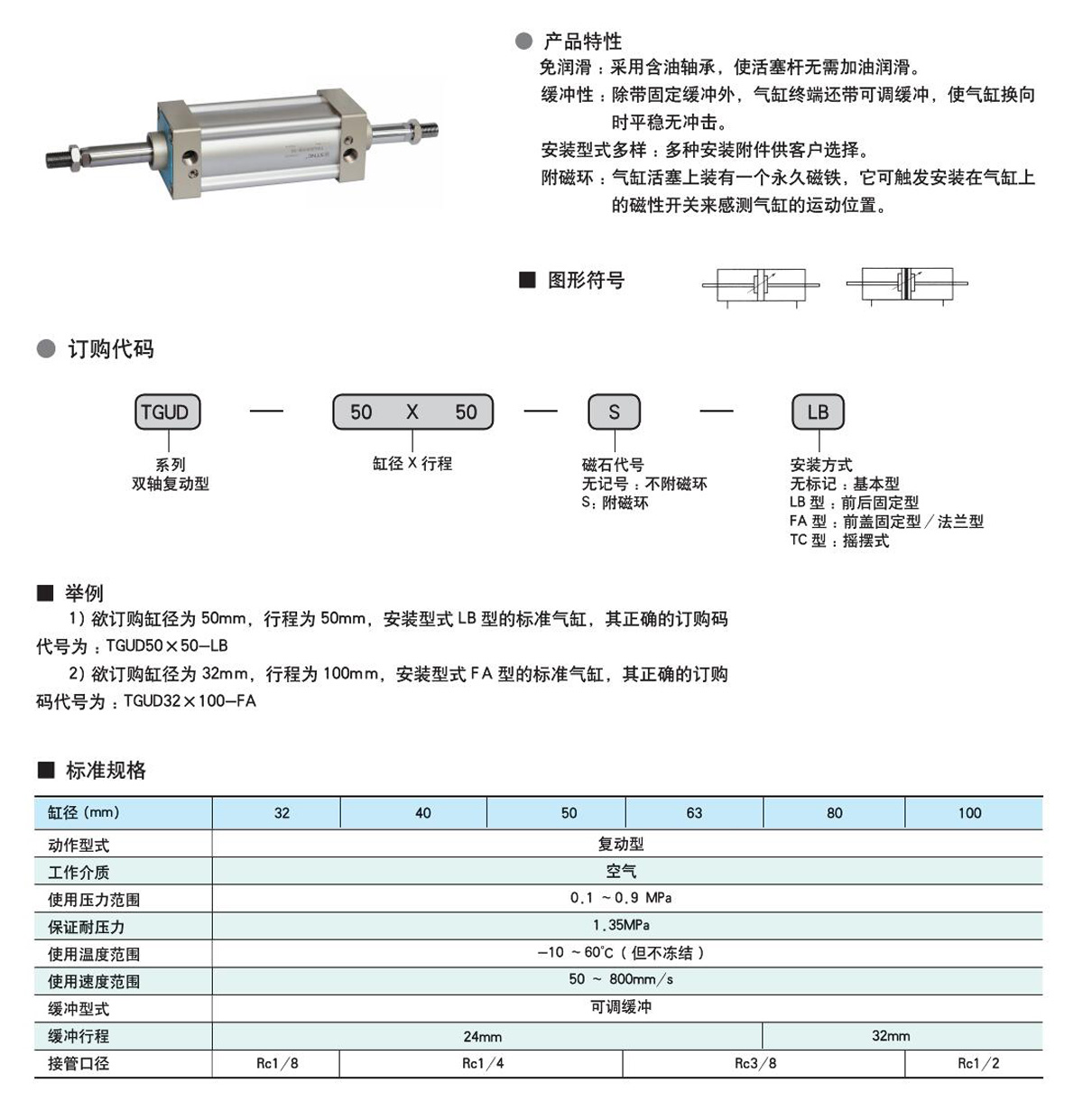 Cilindro estándar de doble eje sin tracción de la serie tgud